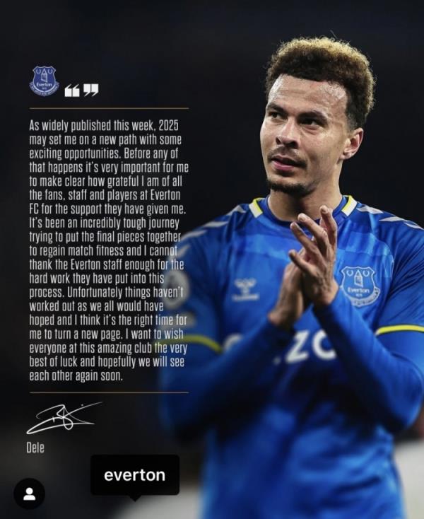 阿里告別埃弗頓:是時(shí)候開(kāi)始新篇章了,感謝所有人對(duì)我的支持